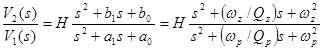 Рассмотрим реализации активных фильтров для обобщенной передаточной функции второго порядка. Их обычно относят к биквадратным функциям фильтрации. Общий вид биквадратных передаточных функций по напряжению второго порядка такой