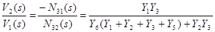 где Y1 =sC1 , Y2 =sC2 , Y3 =sC3 , Y5 =G5 , Y6 =G6 . Передаточная функция фильтра с многопетлевой обратной связью принимает вид: