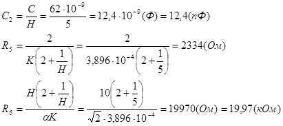 2. Выбираем удобные значения для С1 =С2 =С и R3 =R5 =R6 .