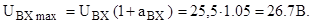 Наибольшее выпрямленное напряжение на выходе выпрямителя определим при максимальном напряжении сети (зададимся отклонением напряжения сети – DUВХ =±10 В)