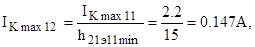 Максимальный ток коллектора Iк max (UКЭ max 11 = UКЭ max 12 = UКЭ max 13 ) и максимальную рассеиваемую мощность для транзистора Т12 , определим как