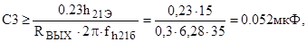 где Кпвых – коэффициент пульсации на выходе фильтра , который задается в зависимости от назначения схемы (так например, для питания первых каскадов УЗЧ с высокой чувствительностью Кпвых = 0,00001...0,00002; для предварительных каскадов УЗЧ и т.п. – Кпвых = 0,0001...0,001; для каскадов УРЧ приемников – Кпвых = 0,0005...0,001; для электронных стабилизаторов напряжения – Кпвых = 0,005...0,03), примем его равным 0,5% ( для стабилизаторов напряжения [2, стр. 36]) ;