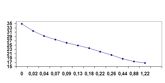 Построим нагрузочную характеристику выпрямителя, то есть график U0 =f(I0 ) путем перемножения ординат, взятых из рис.1.13 в [2, стр.34] , на U2 , а абсцисс на mÖ2U2 /r (m – число фаз выпрямителя, 2).