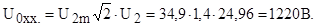 Напряжение холостого хода выпрямителя равно (U2 m определим по графику: U2 m =1.4 * U2 =24.96 * 1.4=34.9 В)