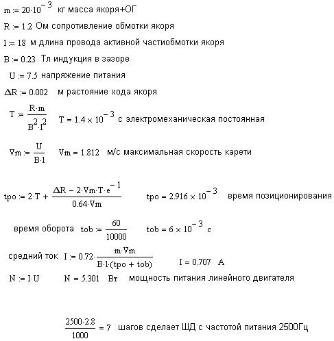 Но даже с учетом теоретического перемещения каретки шаговым двигателем на 7мм за 2,8 мсек, расчетные параметры ЛДП не кажутся физически реализуемыми. Что еще раз говорит о сложности и нецелесообразности создания подобно ЗМСОН.