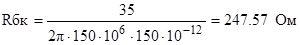 Особенность расчета в данном случае в том, что согласующий трансформатор можно выполнить лишь для определенного набора коэффициентов трансформации, поэтому рассчитаем выходное сопротивление коллекторной нагрузки одного плеча двухтактной схемы при напряжении питания Eк =28 В; выбрав коэффициент трансформации и соответствующее ему сопротивление коллекторной нагрузки, рассчитаем коллекторную цепь.