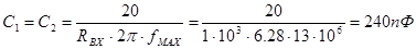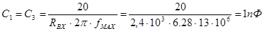 Данному условию соответствуют значения C3=1 нФ, L1=6 мкГн.