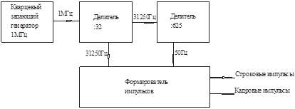 Синхрогенератор предназначен для формирования импульсов синхронизирующих системы развертки на передающей и приемной стороне. Он должен обладать высокой стабильностью задающего генератора для уменьшения вносимых искажений.