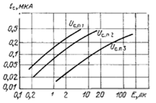 Световая характеристика видикона определяется свойствами фотопроводимости мишени от её освёщенности и зарядом элементарного конденсатора. Заряд зависит от напряжения на сигнальной пластине Uсп , в связи с чем, световые характеристики видикона обычно приводят для различных значений Uсп .