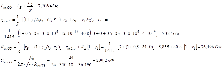 6. Значения Lвх оэ , rвх оэ , Rвх оэ , Свх оэ в эквивалентной схеме входного сопротивления транзистора.