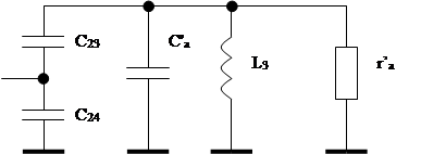 Для определения номиналов элементов (С23 , L3 ) колебательного контура пересчитаем сопротивление антенны в контур следующим образом: