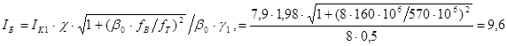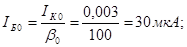 Коэффициент усиления по току в схеме с ОЭ на низкой частоте (f →0) βо =8