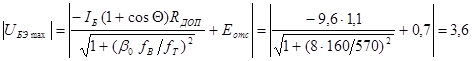 Граничная частота усиления по току в схеме с ОЭ f т =570 МГц