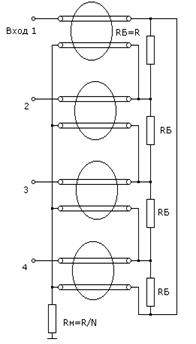 Оконечный каскад построен по модульному принципу со сложением мощностей от отдельных модулей. Каждый модуль представляет собой двухтактную схему. Количество модулей выбрано исходя из того, что, во-первых, оно должно быть четным – для удобства реализации схемы сложения и деления мощностей; во-вторых, должны существовать транзисторы, реализующие мощность отдельного модуля. Количество модулей должно быть минимальным.