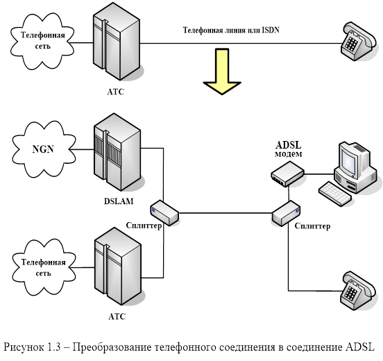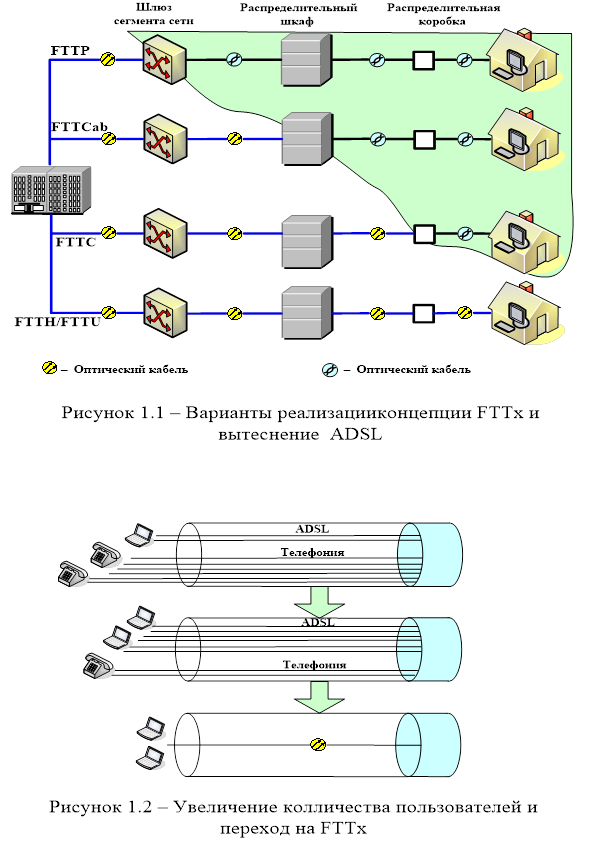 Использование технологий xDSL (цифровая абонентская линия) на существующей медной паре позволяет превратить абонентскую кабельную сеть в часть сети высокоскоростной передачи данных. Технологии xDSL позволяют значительно увеличить скорость передачи данных по медным парам проводов, при этом не требуют глобальной модернизации кабельной сети. Именно возможность преобразования существующих телефонных линий, при условии проведения определенного объема подготовительных технических мероприятий, в высокоскоростные каналы передачи данных и является преимуществом технологии xDSL .