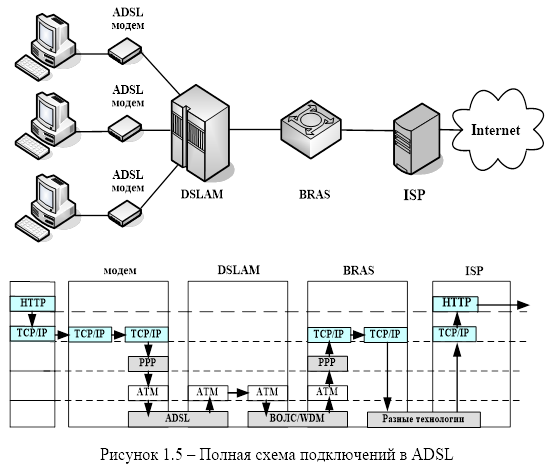 1.3.2 Функционирование ADSL с точки зрения протоколов