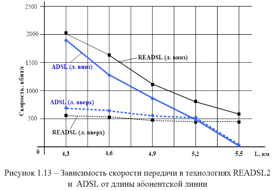 1.4 Развитие ADSL. Технологии ADSL2, ADSL2+, READSL2