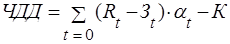 Если в течение расчетного периода не происходит инфляционного изменения цен или расчет выполняется в текущих ценах, то величина ЧДД(или интегрального экономического эффекта) при постоянной норме дисконта равна: