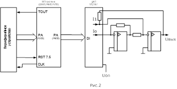 Вывод данных на ЦАП целесообразно осуществлять через порт РА (РФ55), так как этот порт имеет выходной буферный регистр, в котором отсчет yn хранится в течение всего интервала дискретизации (ЦАП не имеет входного буфера). Напряжение на выходе ЦАП на интервале дискретизации остается постоянным.