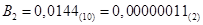 В2 = 0,0144(10) » 0,00000011(2) = 0,012(10) ;