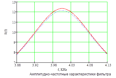 Результаты расчета заданной HT (f) (на графике сплошная красная линия) и реальной HP (f) (на графике пунктирная синяя линия) АЧХ приведены на следующих графиках: