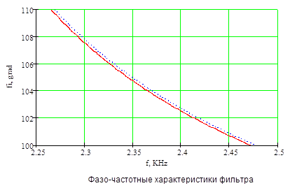 Для сравнения заданной и реальной ФЧХ рассмотрим небольшой участок графиков этих характеристик: