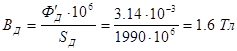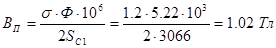 Предварительная магнитная индукция в сердечнике полюса: ![]()