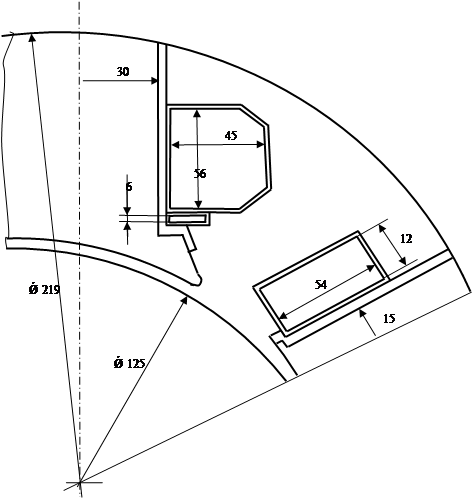 Рис. Эскиз расположения катушек в межполюсном окне двигателя.