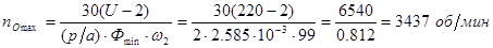 Предел регулирования частоты вращения вверх от номинальной ослаблением поля главных полюсов 3000 об/мин.