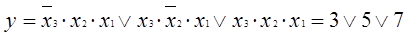 Для зручності виконання операції неповного склеювання пронумеруємо кожну констітуенту із ДДНФ функції