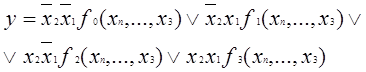 де f0 , f1 , f2 , f3 — залишкові функції від n–2 перемінних. Схема, що відповідає такому представленню функції, показана на рис. 1.3.