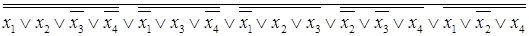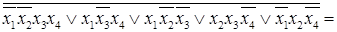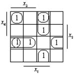 Для заданої функції і для її заперечення знаходимо МДНФ за допомогою діаграми Кароно–Вейча.