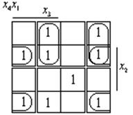 Найбільш проста реалізація заданої функції є при виключенні за допомогою мультиплексора перемінних х2 х1: