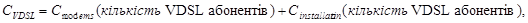 - розрахунок вартості створення МАД VDSL;