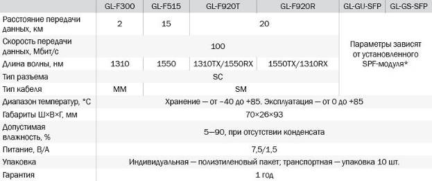 Медиаконвертеры GigaLink выполнены в компактном прочном металлическом корпусе с внешним источником питания и служат для преобразования интерфейсов «витая пара — оптический кабель» для сетей Ethernet. Конвертеры GigaLink могут использоваться как отдельное устройство или устанавливаться в универсальное 14-слотовое шасси GL-RK14 для монтажа в телекоммуникационный 19” шкаф (стойку). Медиаконвертеры поддерживают «горячую» установку и замену при использовании в составе шасси.
