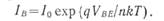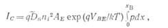 В этом асимптотическом выражении значение параметра п обычно лежит в диапазоне от 1 до 2. Более того, значение параметра Iо превышает значение соответствующего множителя в экспоненциальном выражении, описывающем данную зависимость в средней части диапазона напряжений смещения эмиттерного перехода.