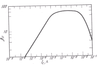 Ток рекомбинации в области объемного заряда течет только через базовый и эмиттерный выводы транзистора. Его преобладание не влияет на коллекторный ток, который практически полностью представляет собой результат коллектирования электронов, инжектируемых эмиттерным переходом. Следовательно, при уменьшении vbE коллекторный ток описывается уравнением :