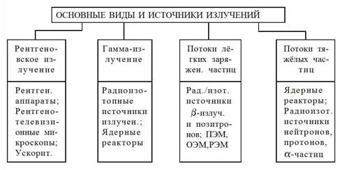 Рис. 2. Разновидности ионизирующих излучений, используемых в РНК
