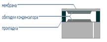 В данном варианте роль подвижной обкладки конденсатора выполняет металлическая диафрагма.