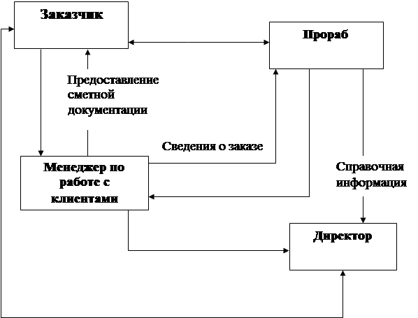 1. Заказчик обращается на фирму к менеджеру по работе с клиентами, для подачи заявки на проведение ремонтно-строительных работ.