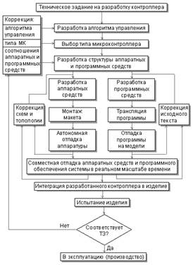 Перед разработчиком МПС стоит задача реализации полного цикла проектирования, начиная от разработки алгоритма функционирования и заканчивая комплексными испытаниями в составе изделия. Методология проектирования контроллеров может быть представлена так, как показано на рис. 1.1.