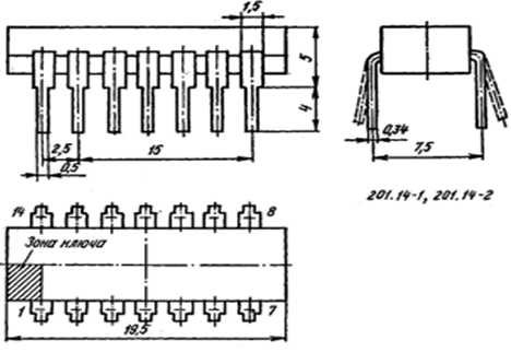 Габаритные чертежи корпуса микросхемы (корпус 201.14-1, 201.14-2)