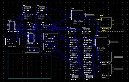 В результате в рабочей области появятся посадочные места компонентов, выводы которых соединены согласно принципиальной электрической схеме.