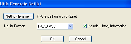 Для процесса компоновки создадим архивную библиотеку компонентов (командой Library/Archivelibrary..)и список соединений (командой Utils/GenerateNetlist..) в редакторе Schematic. Таким образом, мы можем просто загрузить всю схему в редактор PCB.