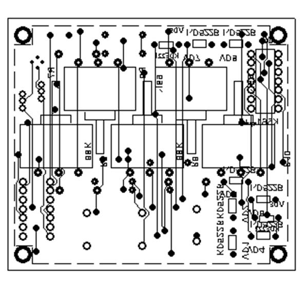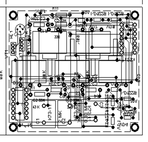 - минимально допустимое расстояние между краями печатного рисунка на верхней и нижней сторонах платы 0,25мм (команда Layer\PadtoPad, PadtoVia, PadtoLine, LinetoVia, LinetoLine, ViatoVia);