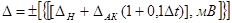 а) полуавтоматического потенциометра Р355, суммарная допускаемая основная погрешность (Δ) которого при температуре t°C не должна превышать значений, определяемых по формуле (1):