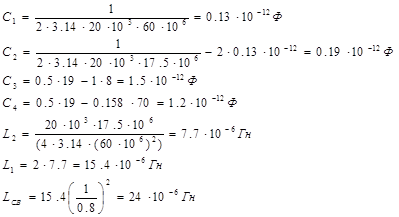 Для расчета элементов фильтров зададимся величиной номинального характеристического сопротивления: Wo= 20кОм.