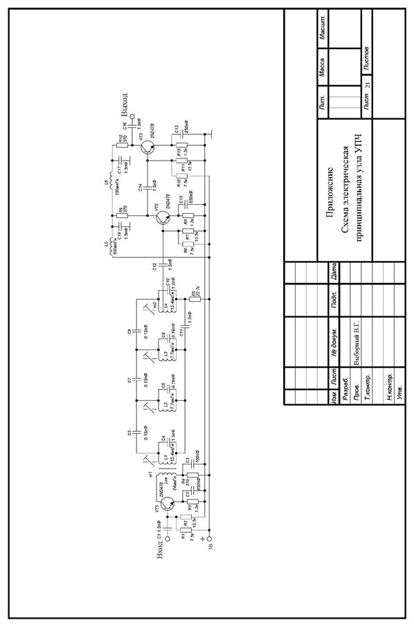 Принципиальная схема трёхкаскадного УПЧ с ФСИ приведена в приложении.