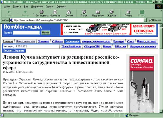 www.rambler.ru/db/news/msg.html?mid=2129741, где "Кучма выступает за расширение российско-украинского сотрудничества".