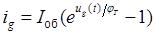 Первое уравнение является уравнением вольтамперной характеристики (ВАХ) диода как безынерционного нелинейного элемента. Из-за нелинейного характера ВАХ, форма тока через диод ig при синусоидальной форме сигнала uc (t ) не является синусоидальной.